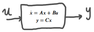 $$\array{\dot{x}=Ax+Bu\\y=Cx}$$donde,