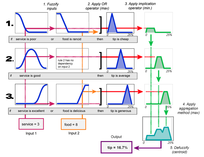 Dado un sistema con dos entradas $X$ y $Y$ y una salida $Z$, podemos definir las reglas de control en el modulo de inferencia así: